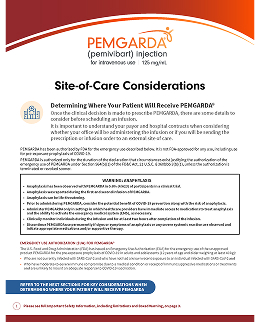 • PEMGARDA is not authorized for use for treatment of COVID-19, or for post-exposure prophylaxis of COVID-19 in individuals who have been exposed to someone infected with SARS-CoV-2.